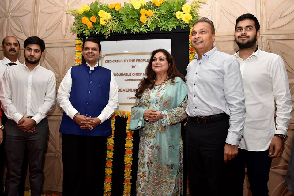 The Hon’ble Chief Minister of Maharashtra, Shri Devendra Fadnavis at the inauguration ceremony of Reliance Hospitals along with Mrs. Tina Ambani, Chairperson, Kokilaben Dhirubhai Ambani Hospital and Reliance Hospitals, Mr. Anil Ambani, Chairman, Reliance Group, along with Mr. Anmol Ambani, Executive Director, Reliance Capital and Mr. Anshul Ambani.